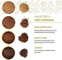 - Portable Small Size, 150W Motor Our electric coffee grinder can be held by one hand easily and its compact design occupies less counter space, also easy to store in a cabinet or drawer.